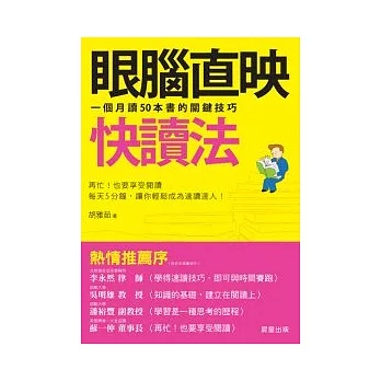 眼腦直映快讀法![]() | 我只是特別,不是難搞-發揮優勢人格,從怪咖變型咖![]() | 健康、財富與愛的人生秘密![]() | |||